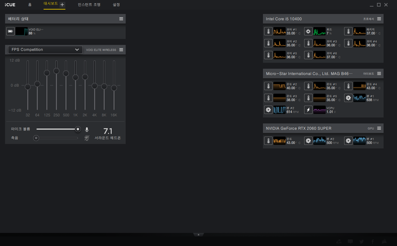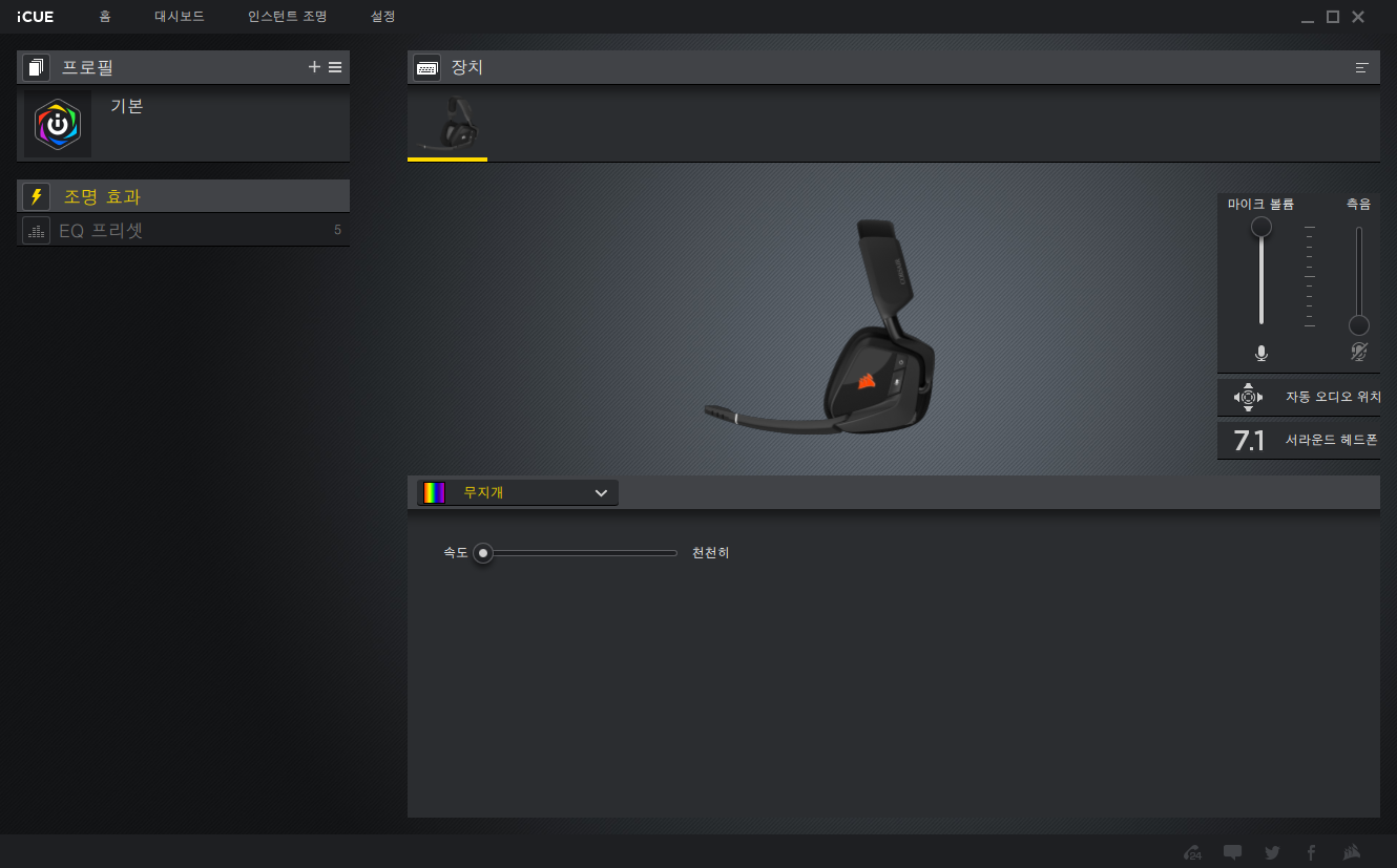 CORSAIR iCUE라는 자체 소프트웨어로 배터리 용량 확인, 측면 LED 변경, EQ 세팅, 기타 등등을 변경 할 수도 있다.