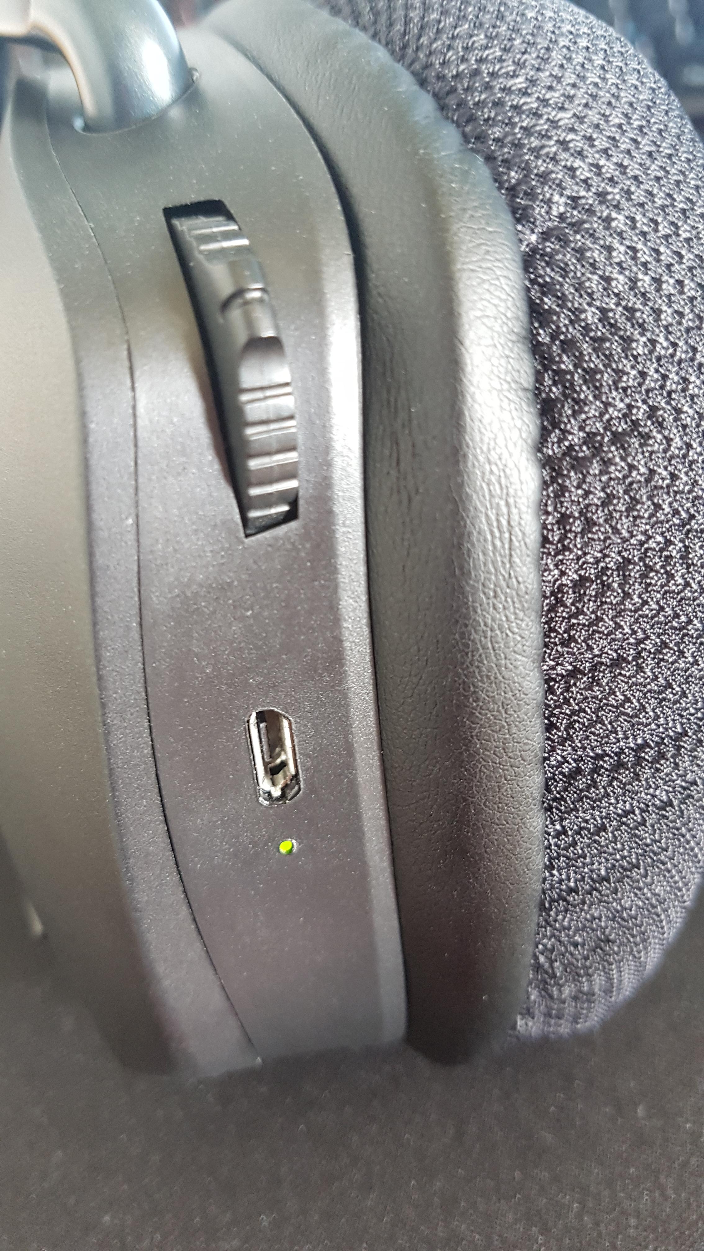 측면에는 커세어 LED, 전원, 마이크 ON/OFF 버튼,