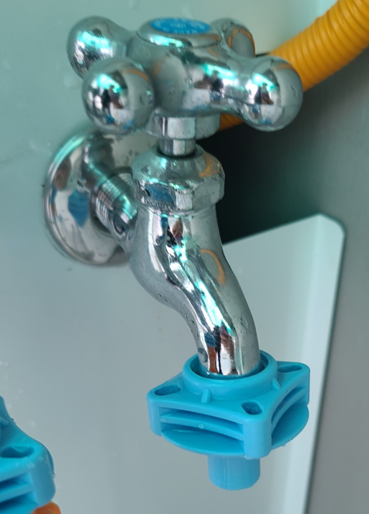 2) 다시 물을 틀었을때, 수도꼭지에는 새지 않았고 수도꼭지가 연결되는 캡부분에서 물이 위로 새고 있었다. 호스캡 불량이 의심됐음. 수도꼭지에서 샜다면 수전 자체를 교체해야되니 굉장히 골치 아팠을거같음