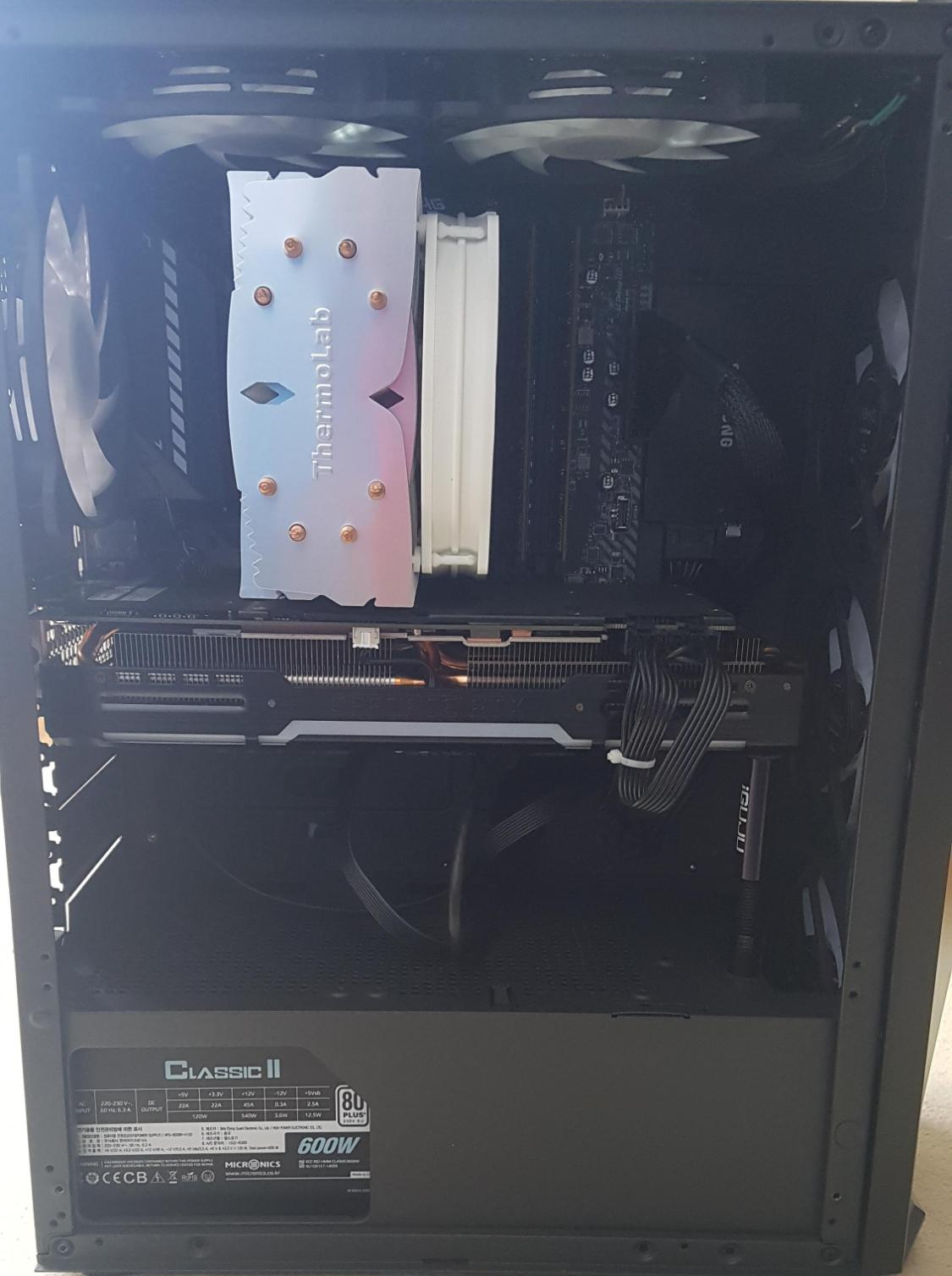- 기본쿨러로 조립했다면 이 단계를 볼 필요는 없다. 쿨러 제조사에서 설명서를 보내줘서 따라하기만 하면 문제는 없지만 주의해야 할 팁 몇가지를 적자면,- 서멀 도포 : 쿨러 구성품에 주사기 형태로 된 서멀이 동봉되어 있다. 방열판을 달기 전 먼저 CPU 위에 적당량(?)을 뿌려주면 되는데, 너무 많으면 서멀이 CPU 옆으로 세어나가고, 너무 적으면 방열판으로 열 전달이 제대로 되지 않고.. 처음하면 양조절이 쉽진 않다. 본인은 CPU위에 X자 형태로 서멀을 짜준 뒤 면봉으로 얇게 펴줬다. 참고로 서멀은 1년에 서너번정도 재도포해주는 게 좋다고 한다.