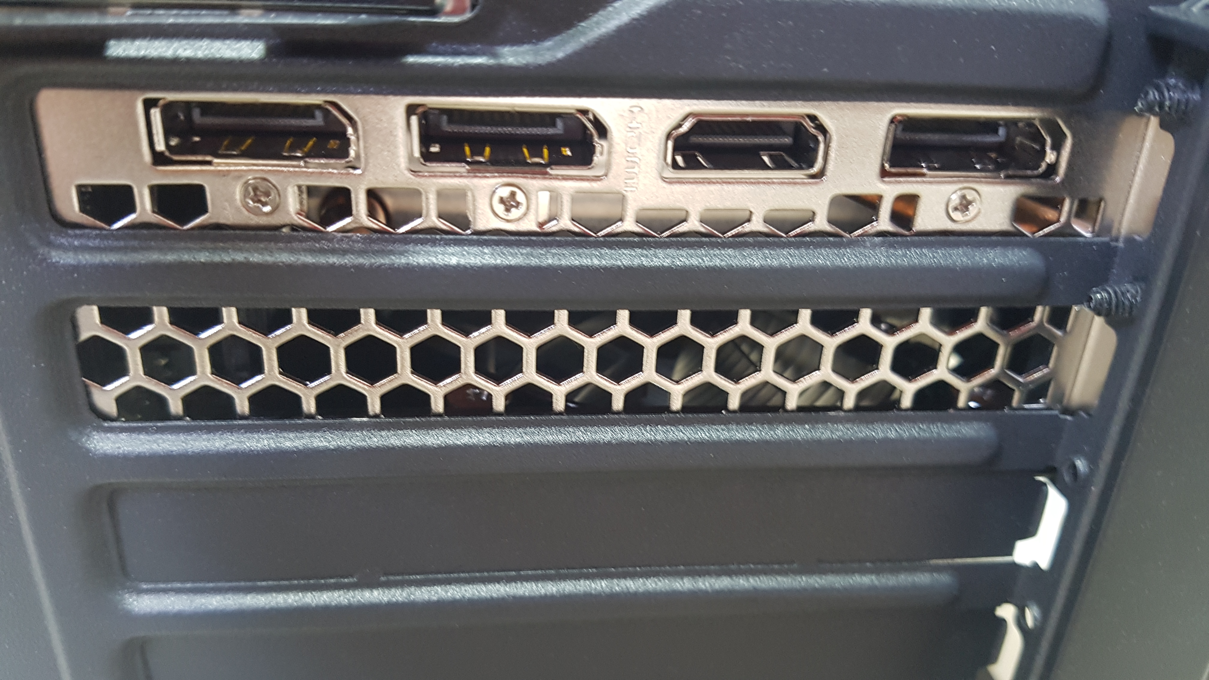 - 케이스 후면에 보면 제거할 수 있는 플라스틱 구멍이 가로로 여럿있는데, 그래픽카드를 장착했을때 DP와 HDMI를 꽂을 수 있게, 그리고 그래픽카드 배기판이 노출되도록 2줄 정도 이 커버를 제거해줘야 한다.